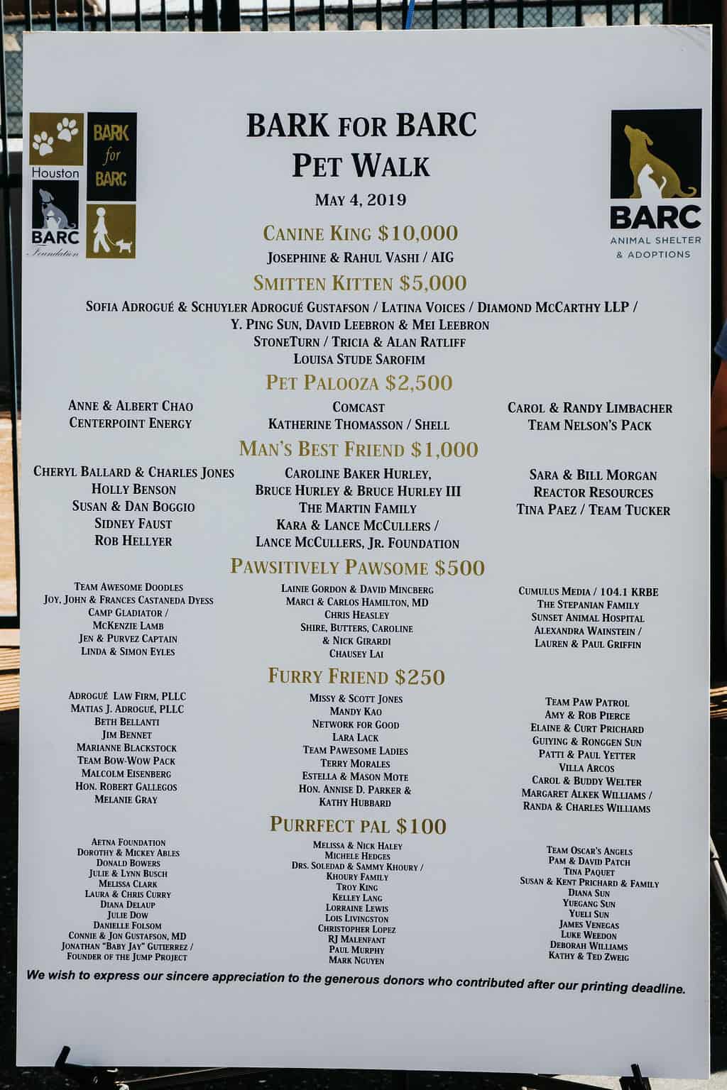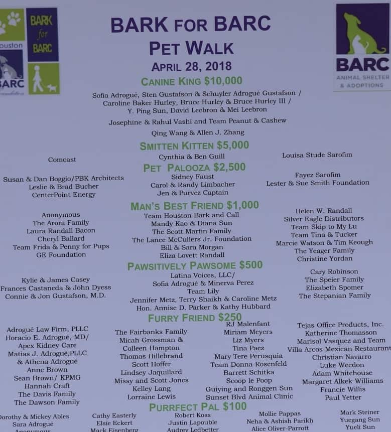 The Houston BARC Foundation is extremely grateful to our sponsors, donors, and participants for making the 4th Annual BARK for BARC Pet Walk such a success – Thank you!